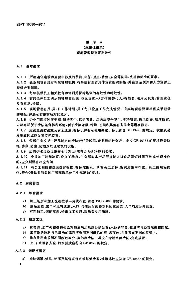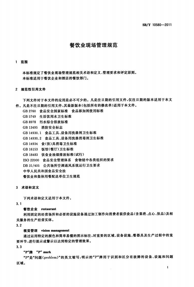 SB/T 10580-2011 餐飲業(yè)現(xiàn)場管理規(guī)范