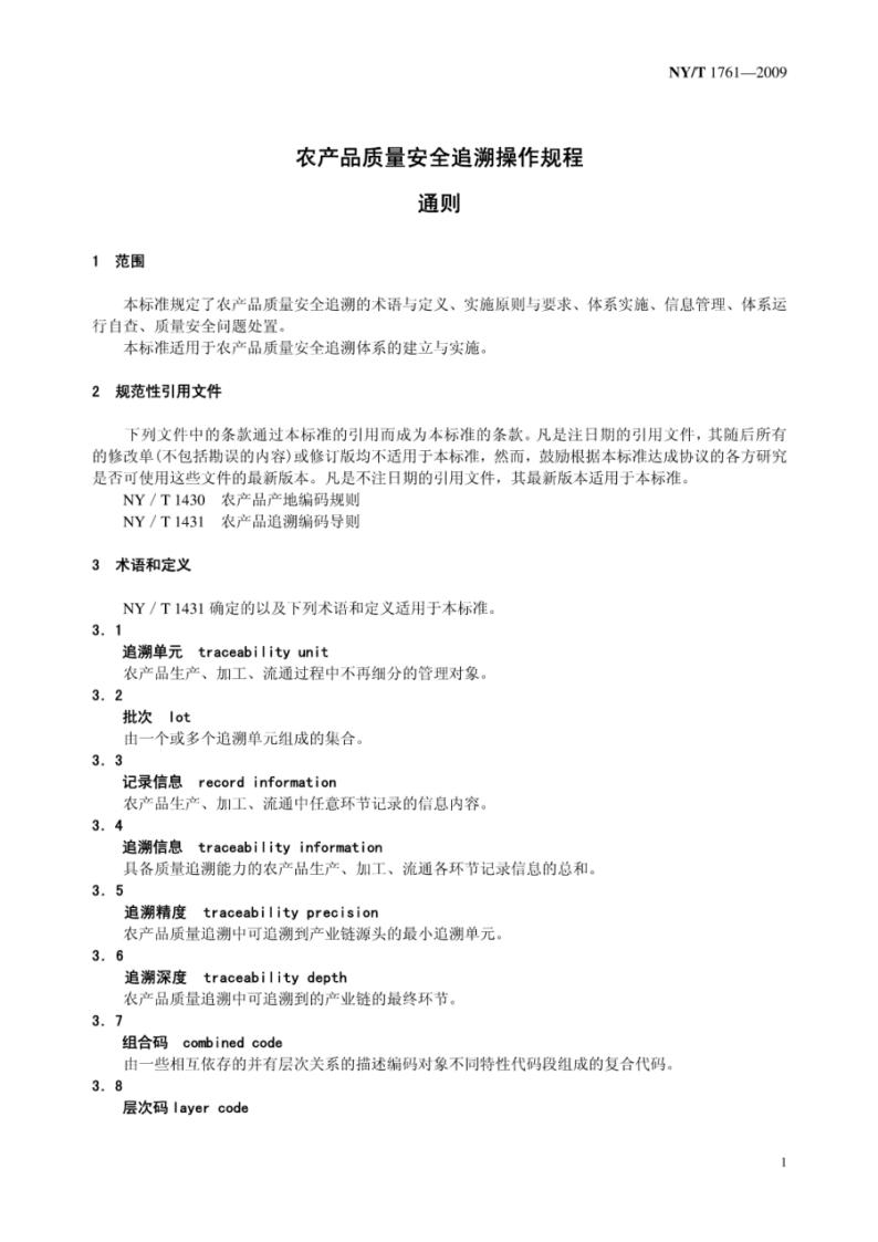 NY/T 1761-2009 農(nóng)產(chǎn)品質(zhì)量安全追溯操作規(guī)程通則