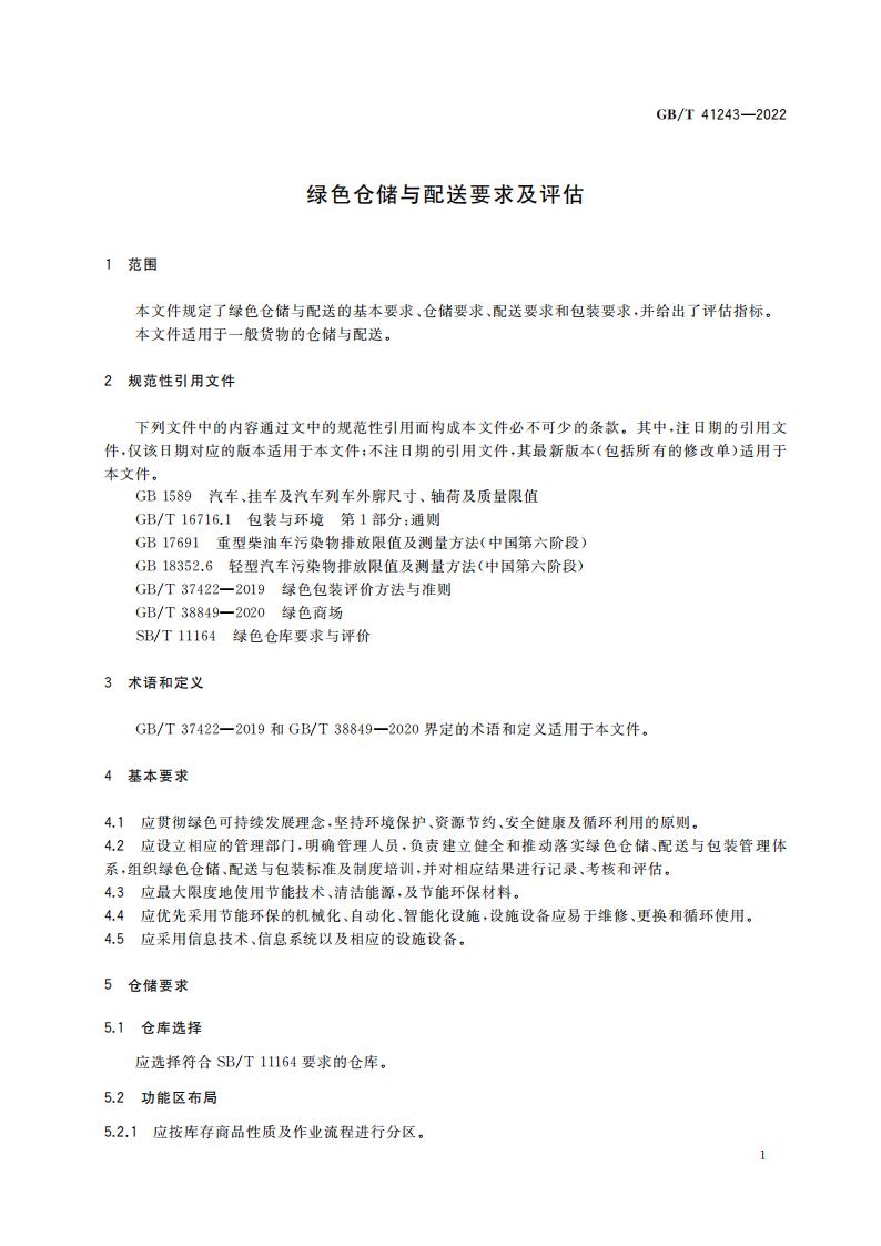 GB/T 41243-2022 綠色倉儲與配送要求及評估