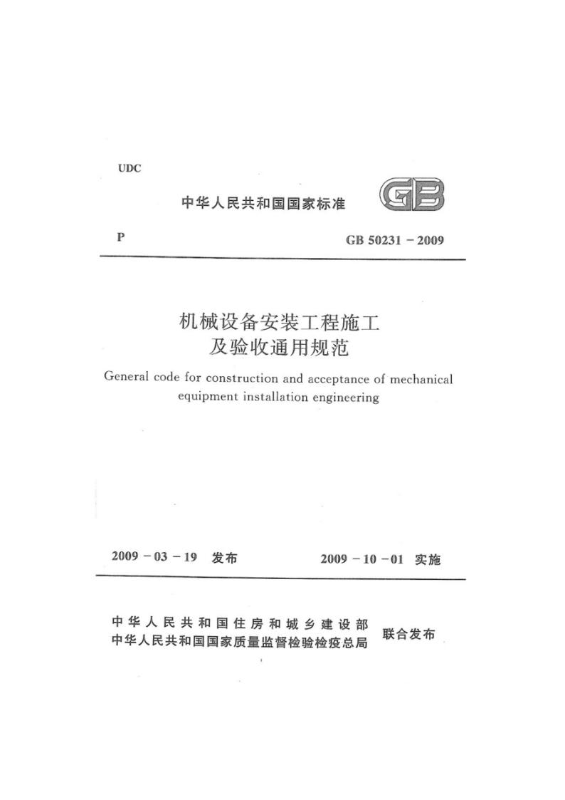 GB 50231-2009 機械設(shè)備安裝工程施工及驗收通用規(guī)范