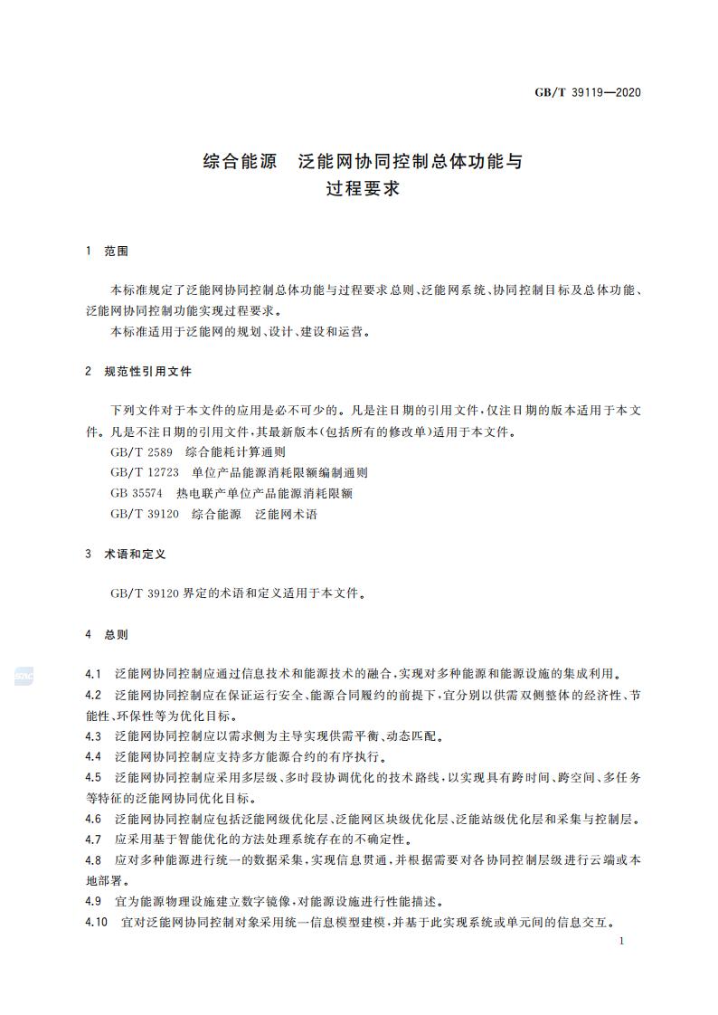 GB/T 39119-2020 綜合能源 泛能網(wǎng)協(xié)同控制總體功能與過程要求