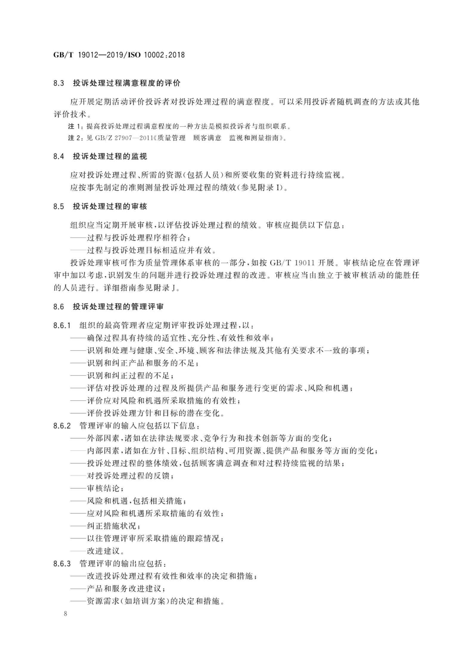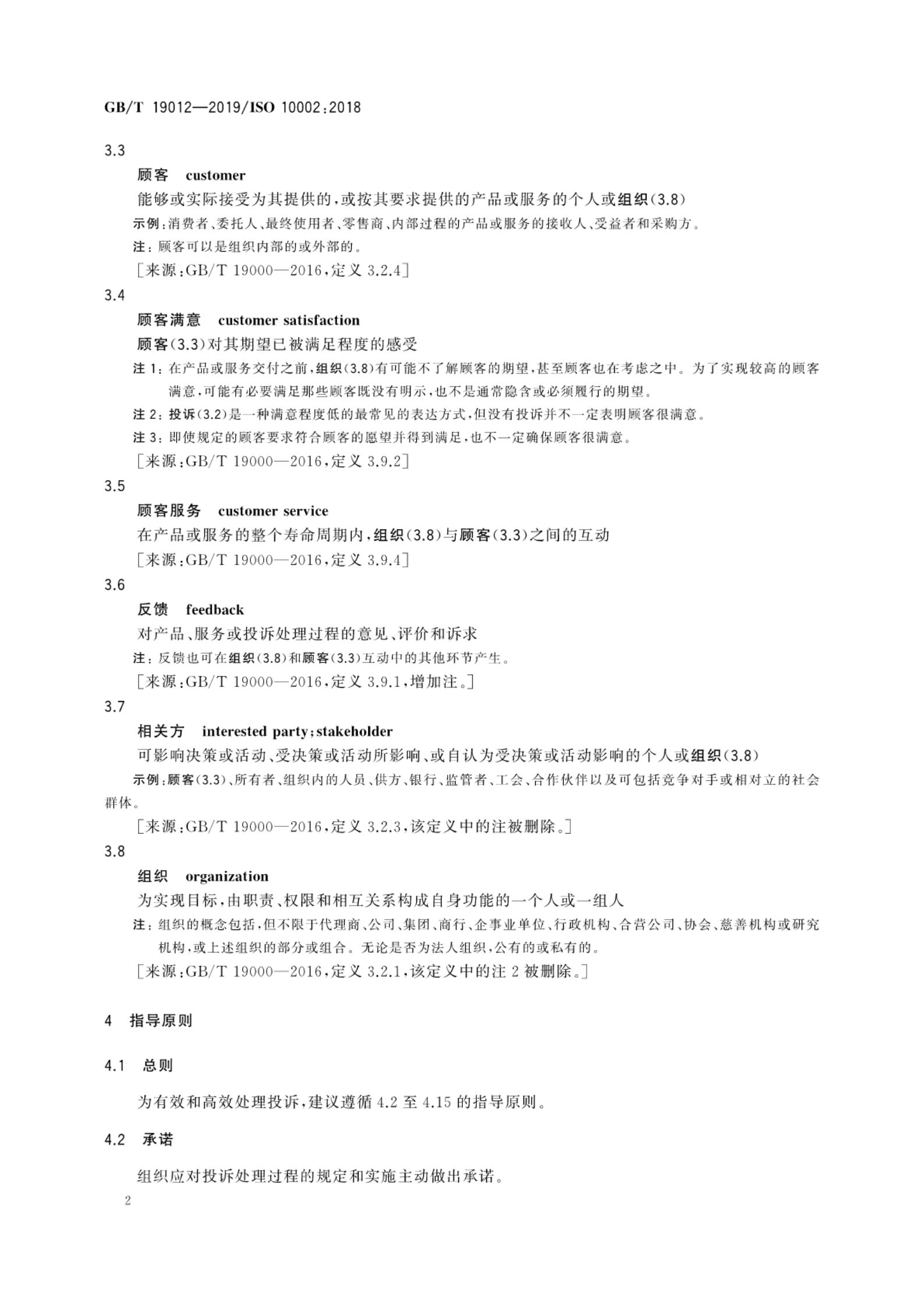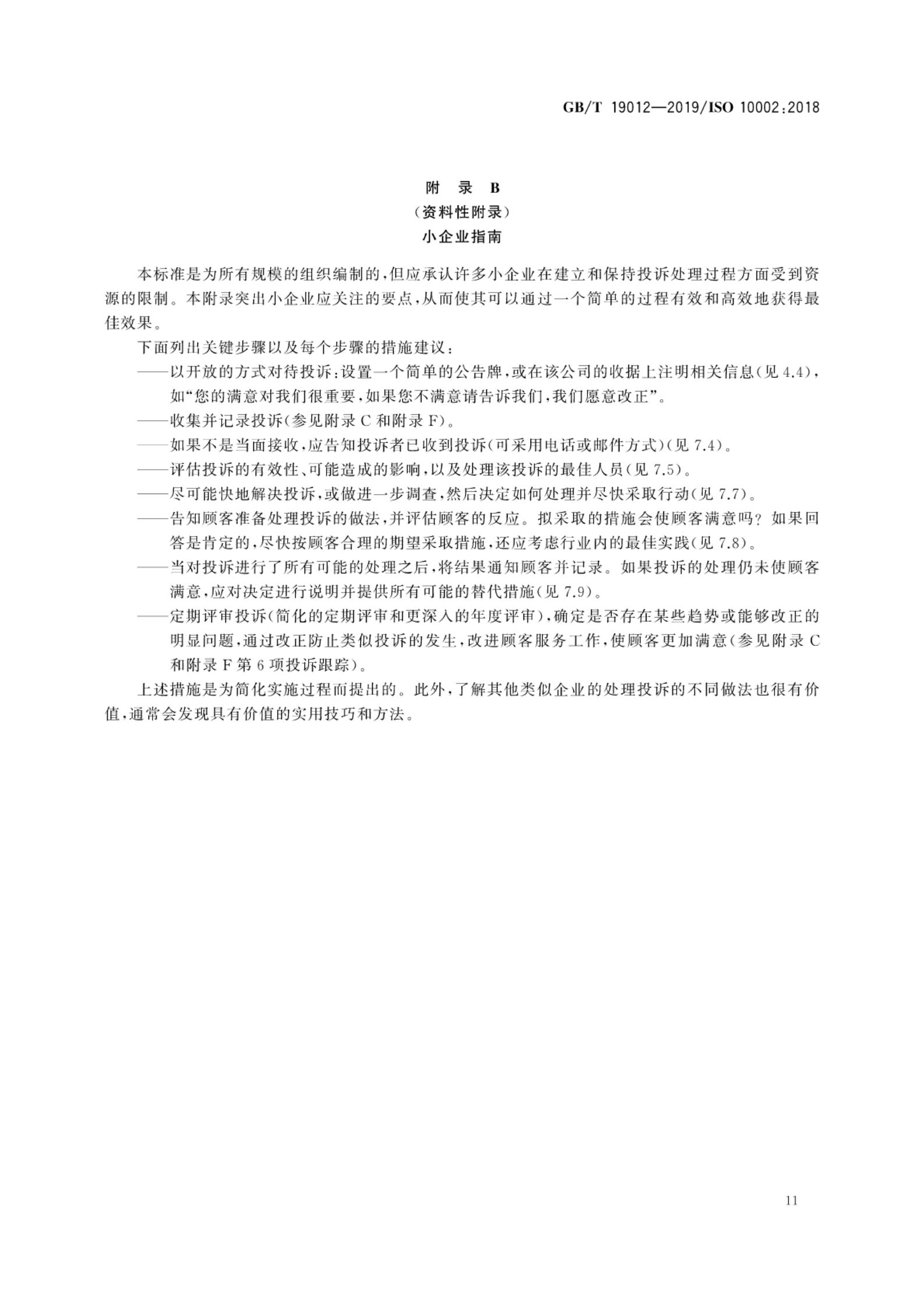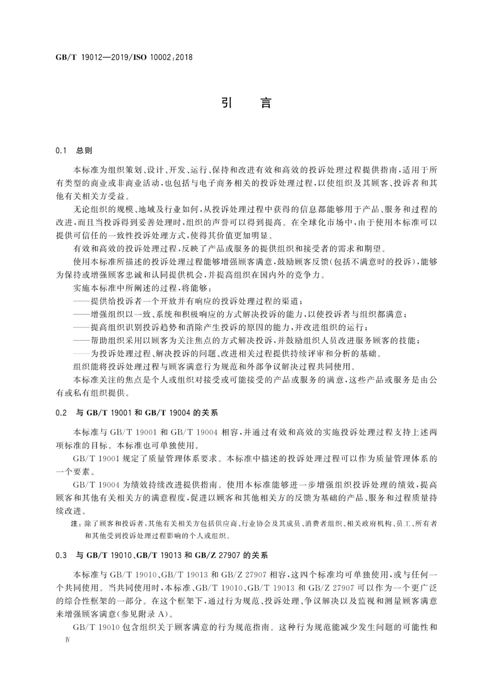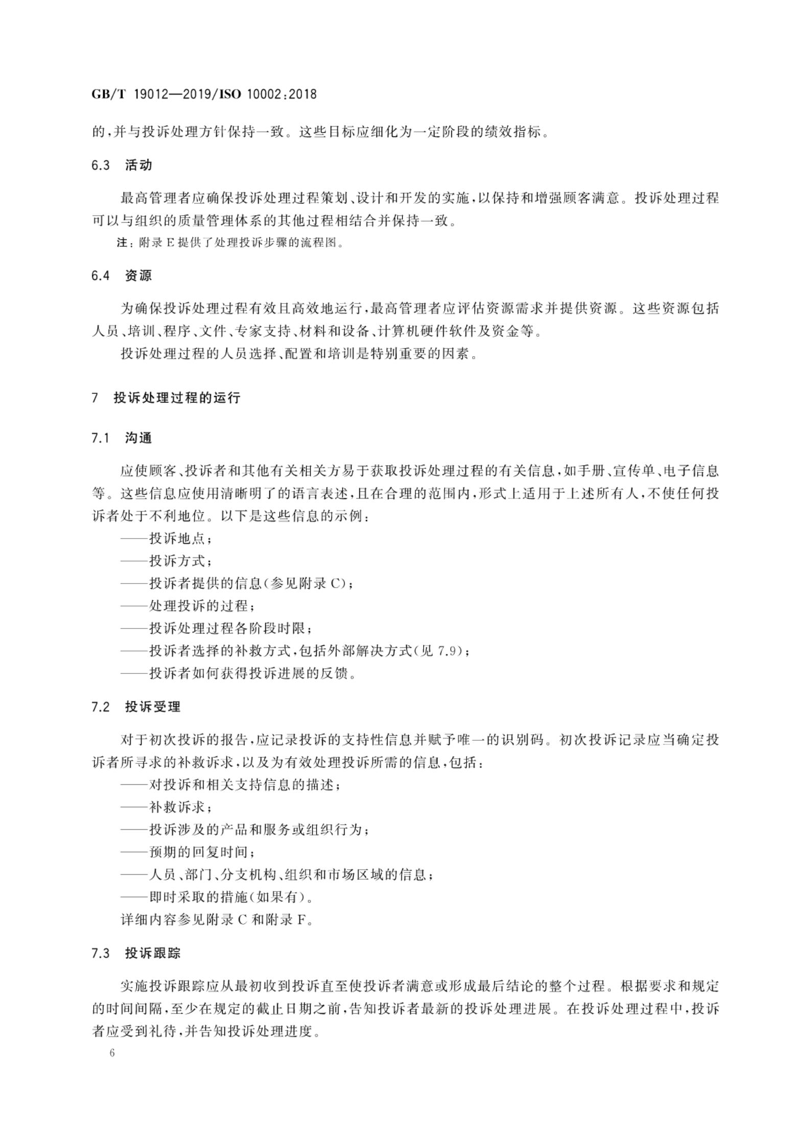 GB/T 19012-2019 質(zhì)量管理 顧客滿意 組織投拆處理指南