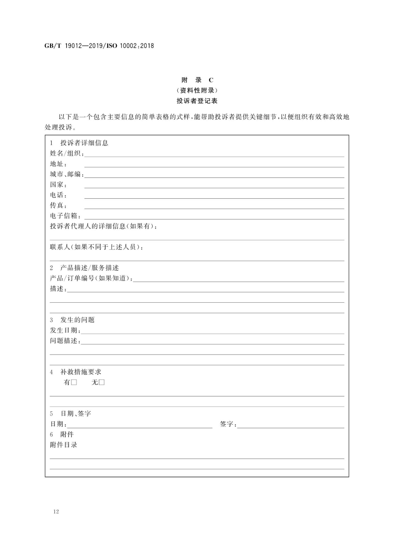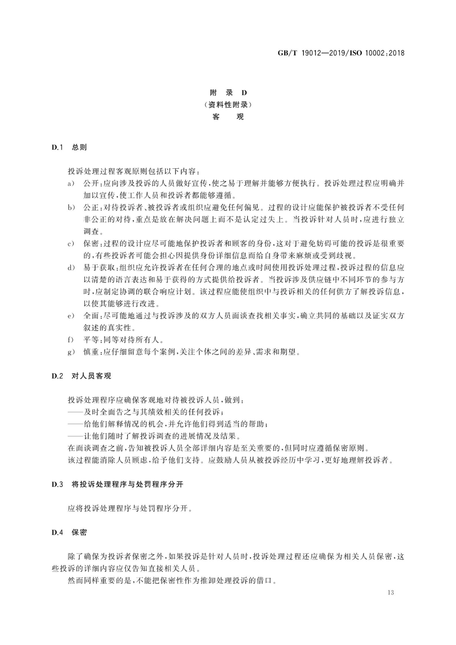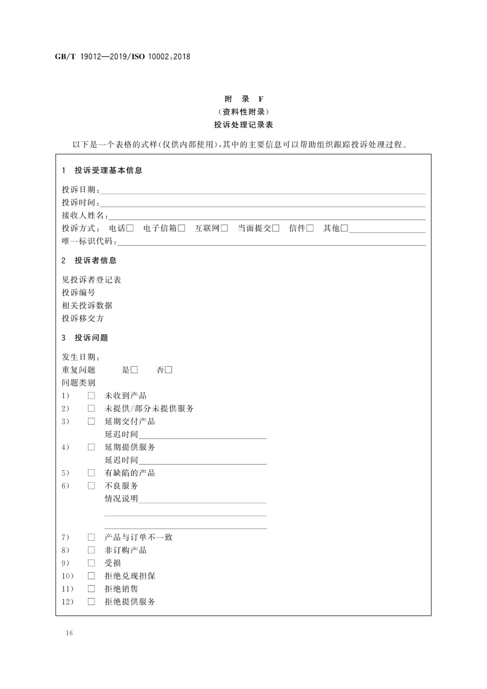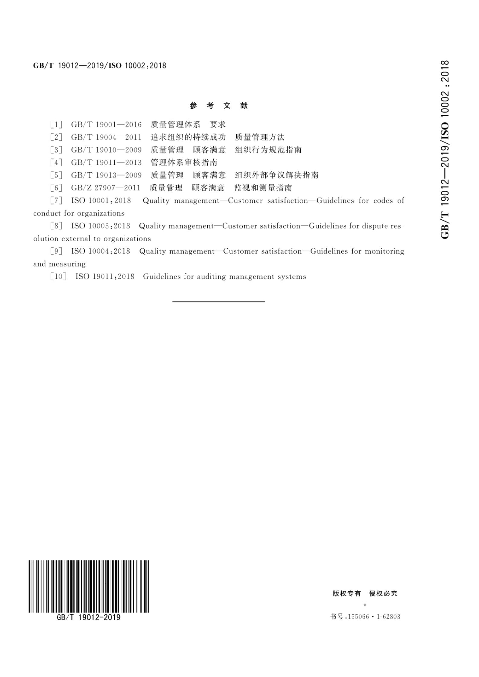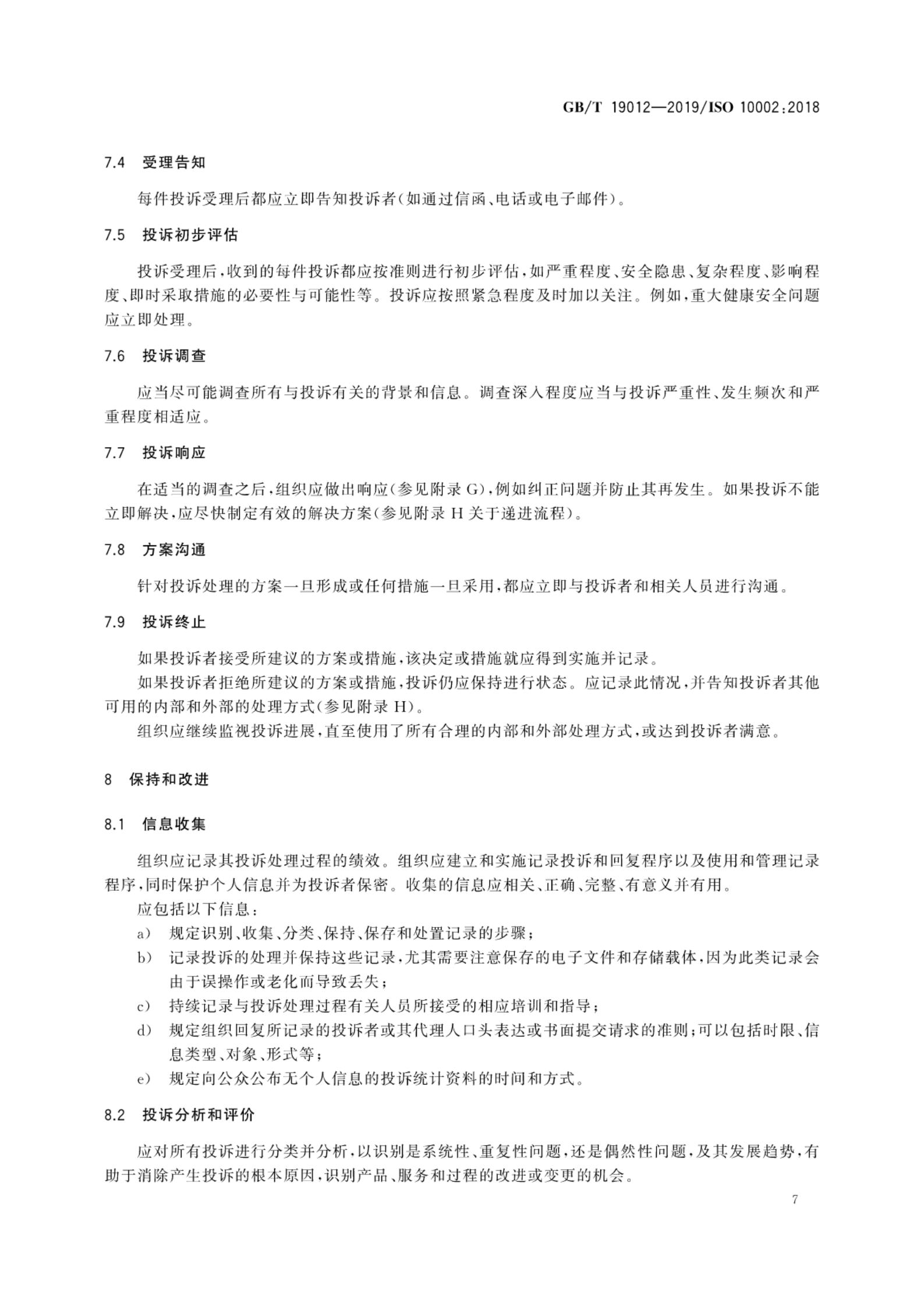 GB/T 19012-2019 質(zhì)量管理 顧客滿意 組織投拆處理指南