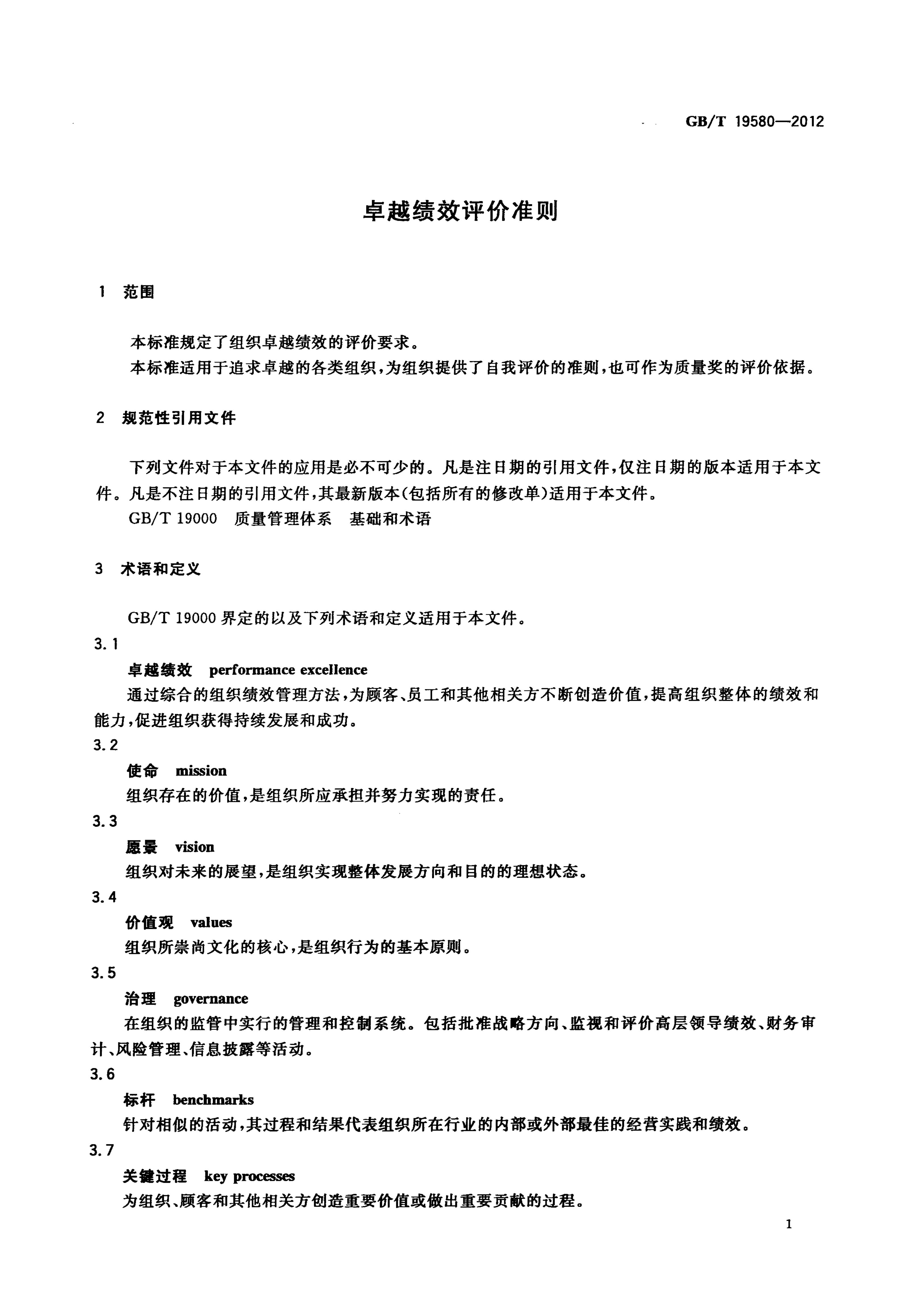 GB/T 19580-2012 卓越績效評價準則