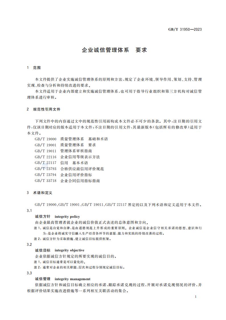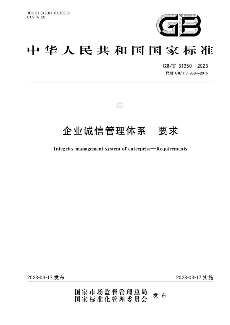 GB/T 31950-2023 企業(yè)誠(chéng)信管理體系 要求