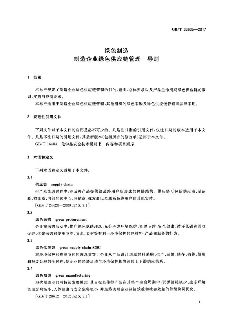 GB/T 33635-2017 綠色制造 制造企業(yè)綠色供應(yīng)鏈管理 導(dǎo)則