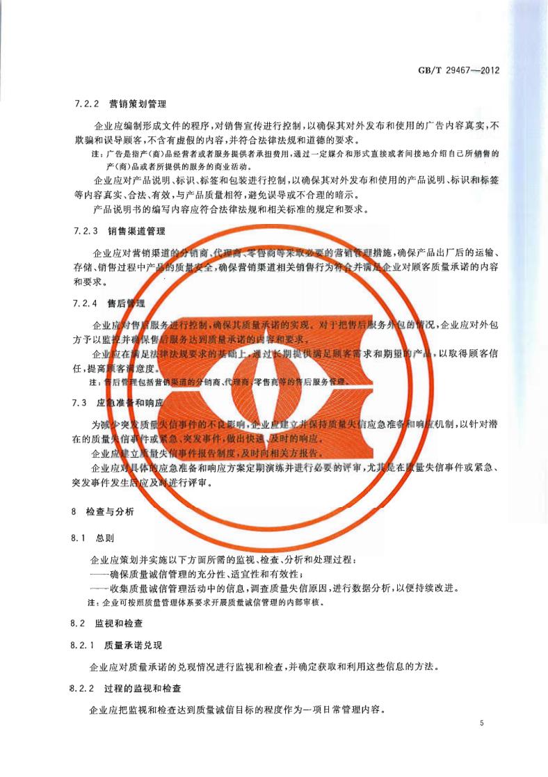 GB/T 29467-2012 企業(yè)質(zhì)量誠信管理實施規(guī)范