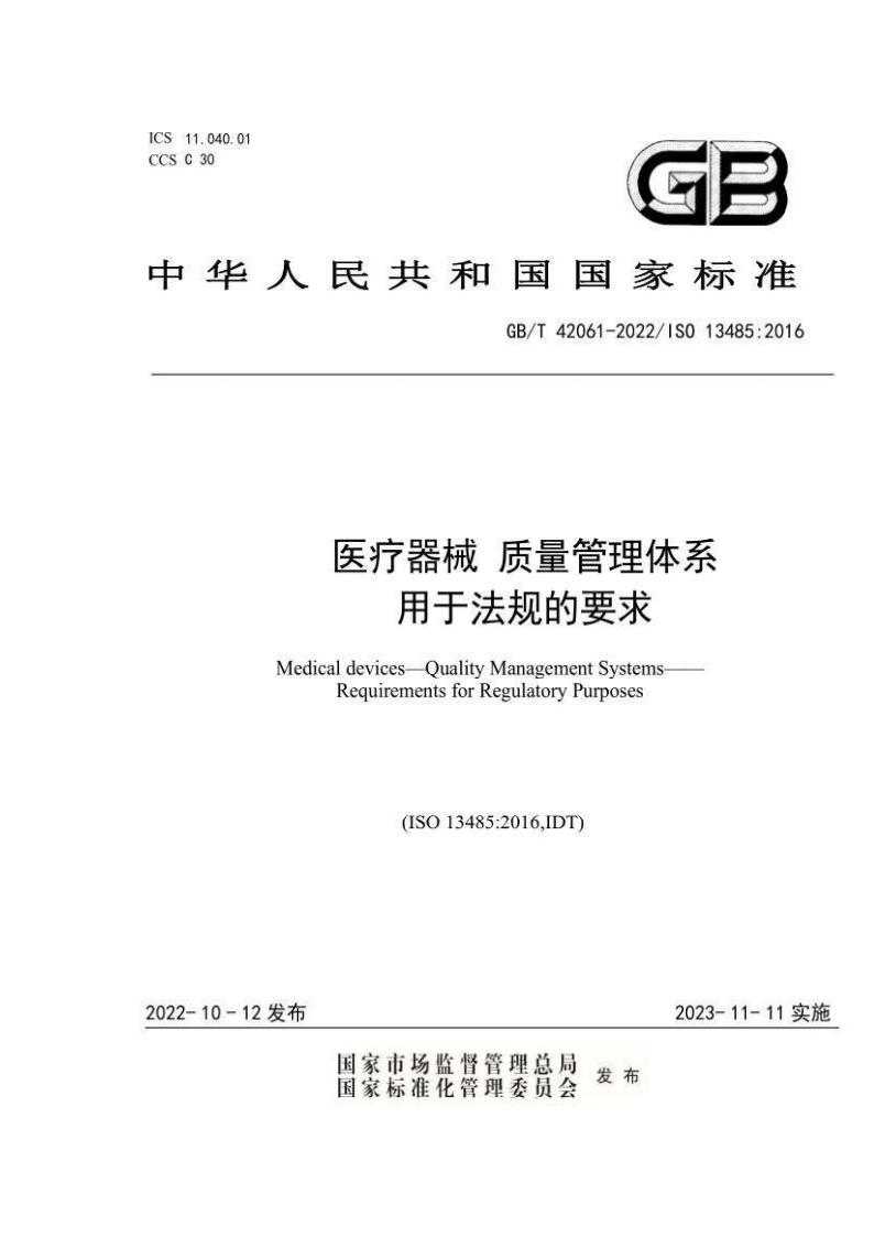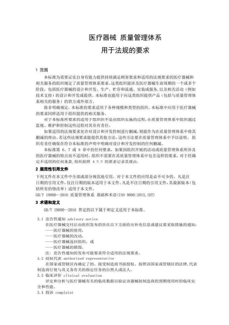 ISO 13485-2016 醫(yī)療器械 質(zhì)量管理體系